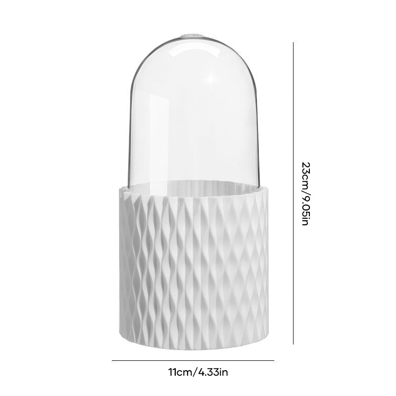 SpinGlam er designet til makeup elskere, der værdsætter både organisation og stil. Dens 360° roterende funktion giver nem adgang til dine børster, hvilket gør din skønhedsrutine mere effektiv. Det slanke og moderne design tilføjer et strejf af elegance til din forfængelighed, mens du holder dine væsentlige ting pænt arrangeret.