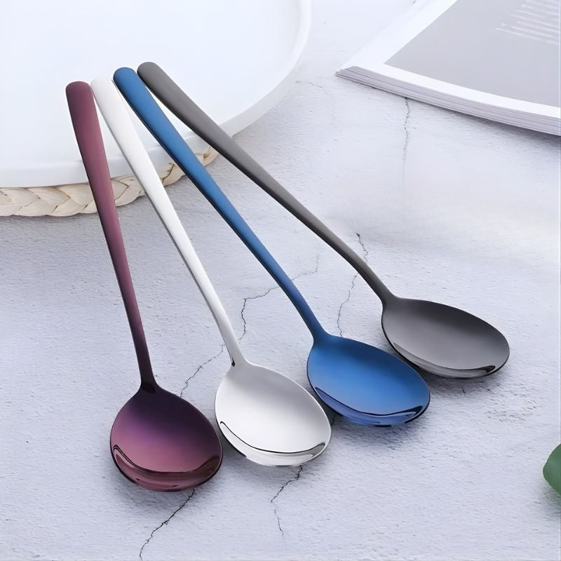 SpoonLuxe langhåndede ske har et forlænget håndtag og kan bruges til at røre, blande eller servere mad i hjemmet eller køkkenmiljøer.