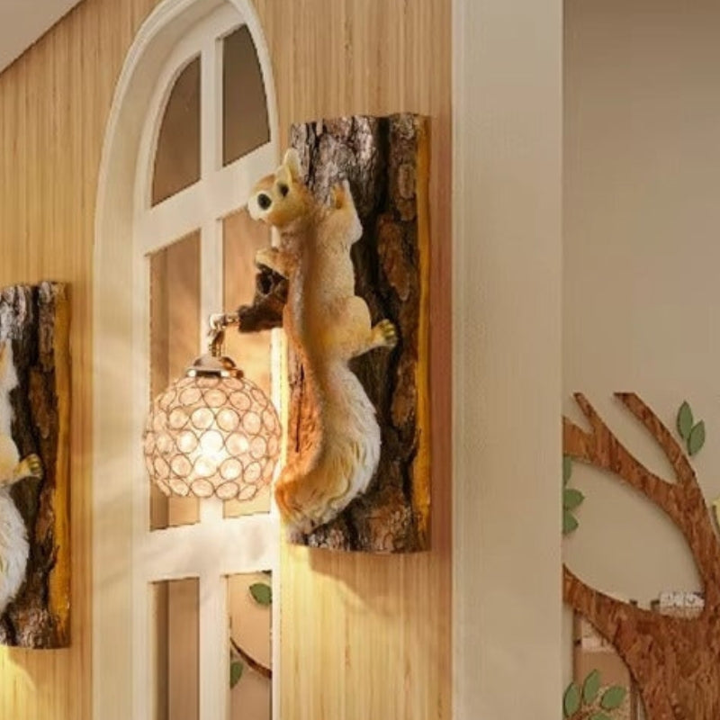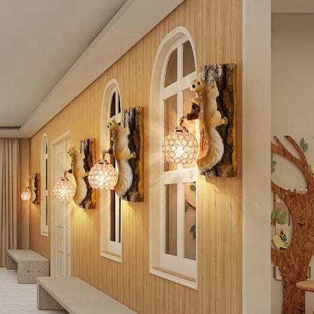 SquiGlow – Dekorativ Egern Væglampe med Bobleglas-skærm
