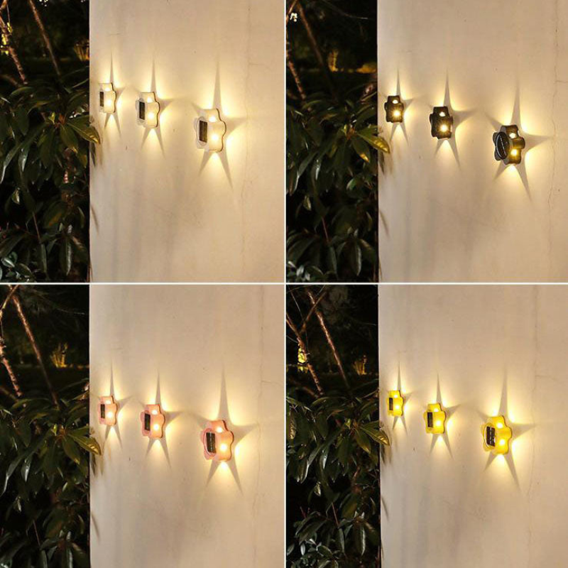 Denne udendørs væglampe har et pentagramformet design lavet af ABS og akrylmaterialer. Den drives af solenergi, indeholder fem integrerede LED-lyskilder og har en IP65-klassificering, hvilket gør den velegnet til udendørs brug i haver, på terrasser eller langs hegn.