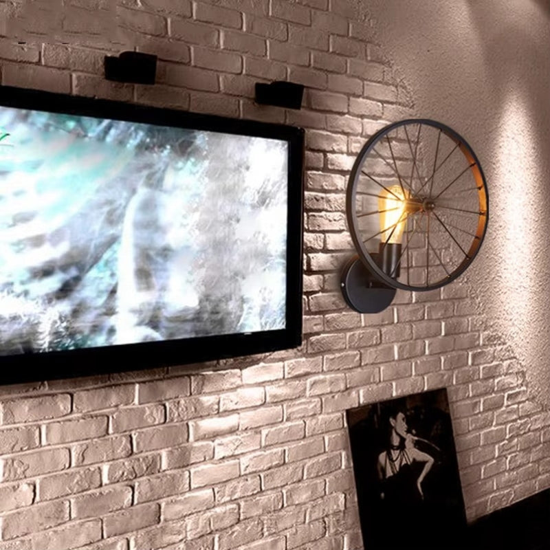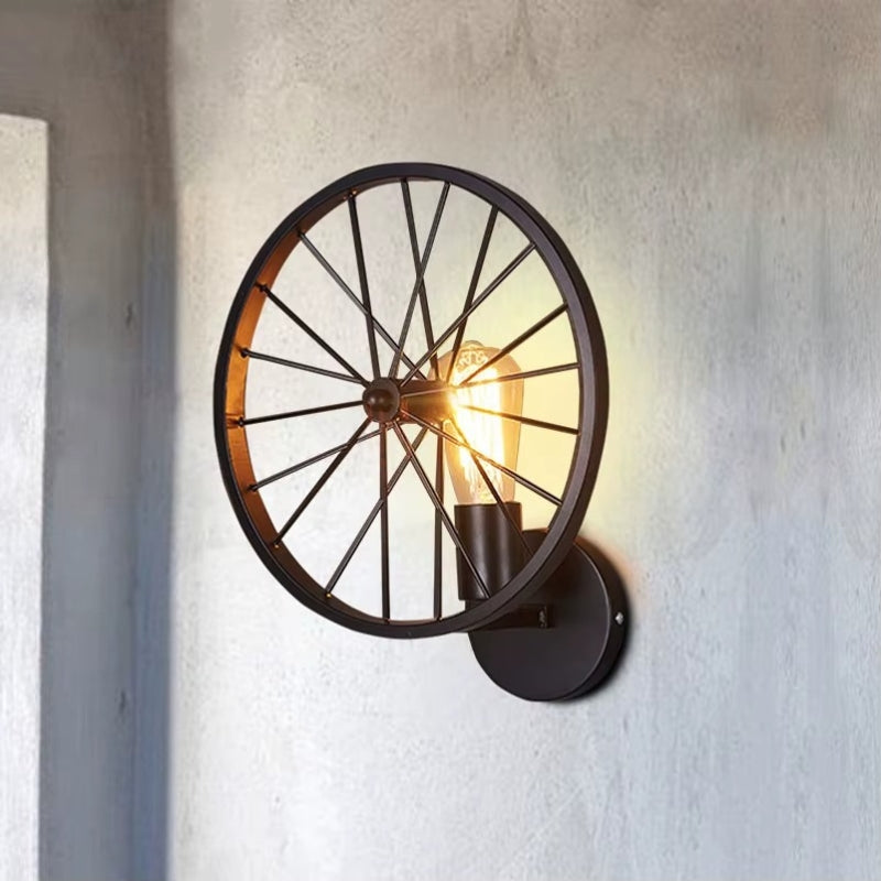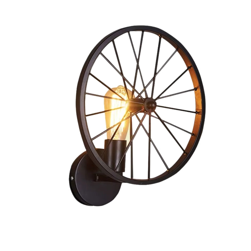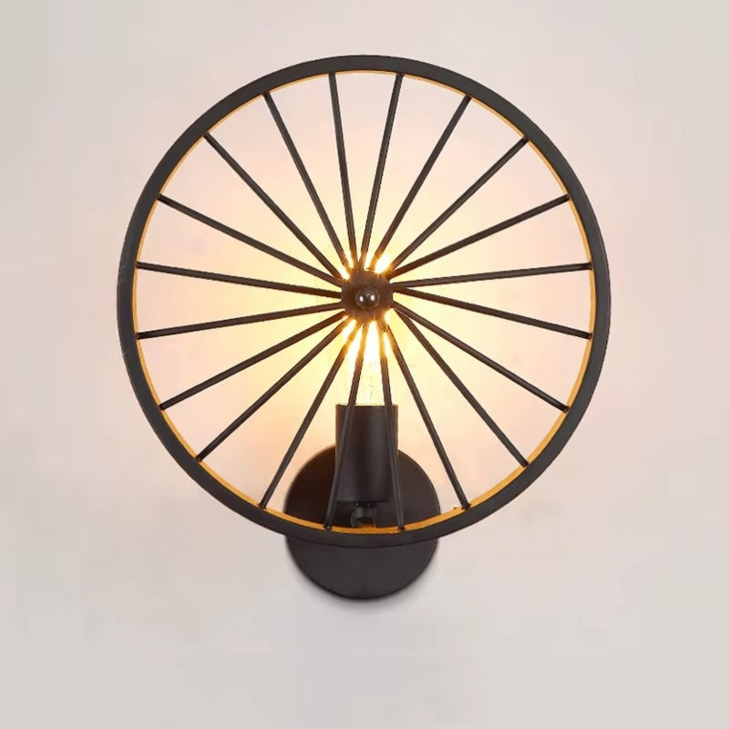 SteelOrbit – Industriel Rund Væglampe med Hjuldesign