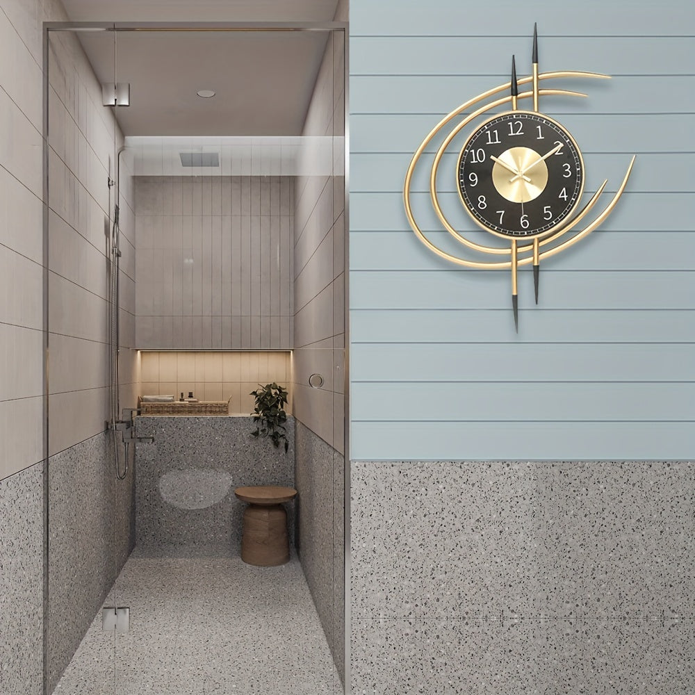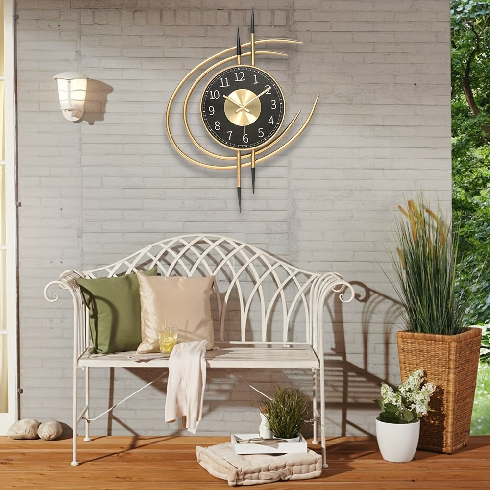 StellarArc væguret bringer kunstnerisk elegance til dit hjem med sine skulpturelle kurver og slående kontrast af sort og guld. Det er mere end bare et ur; det er et dekorativt element, der tiltrækker opmærksomhed i ethvert rum. Uanset om det er i en stue, entré eller et arbejdsværelse, tilbyder det visuel interesse, der passer til både moderne og klassiske interiører. Det elegante design gør det til en subtil, men effektfuld indretningsopgradering.
