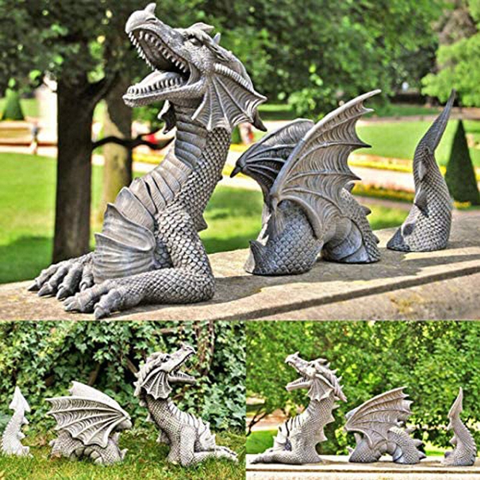 Med sin imponerende størrelse og modige design fungerer denne drageskulptur som et fortryllende omdrejningspunkt, inspirerer ærefrygt og sætter gang i fantasien. Perfekt til at tilføje en mystisk charme til dit rum, det forvandler enhver udendørs indstilling til et sted med fantasi og intriger.