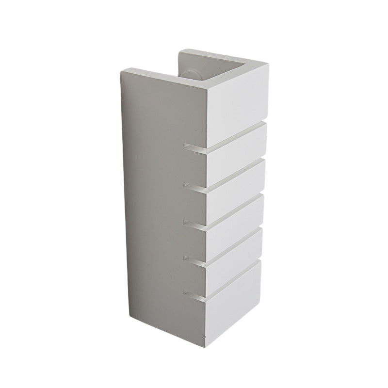 StripeGlow tilfører moderne enkelhed til hjemmet med sin kvadratiske gipsform i stribet mønster. Den hvide finish gør, at lampen falder naturligt ind i væggen, mens den spreder en varm belysning fra sin enkeltpære. Det minimalistiske design gør den ideel til soveværelser, stuer eller gange, hvor den fungerer både som praktisk lampe og dekorativt element. Fremstillet i gips giver den holdbarhed kombineret med raffineret stil.