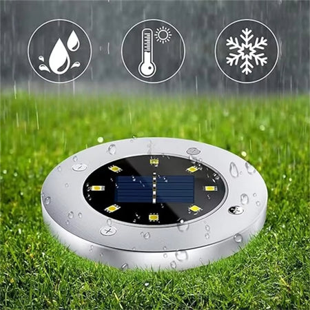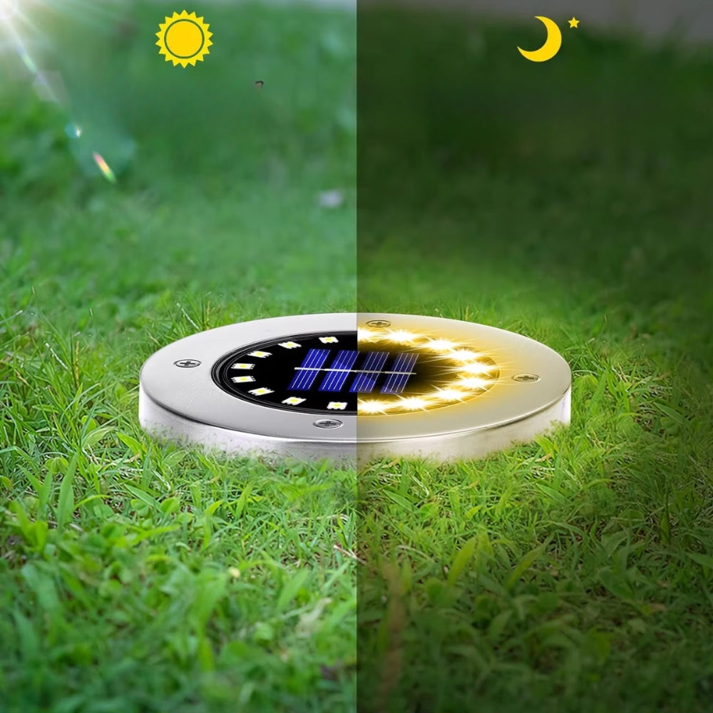 SunGlow solcelledrevet havebelysning er designet til at forbedre dine udendørsområder med miljøvenlig belysning. Den har et slankt, cirkulært design med et solpanel i midten, der udnytter solens energi til at oplyse din have eller sti. Når den er opladet, giver de omkringliggende LED-lys et klart og energieffektivt lys, der tilføjer både stil og funktion til dine udendørs områder.