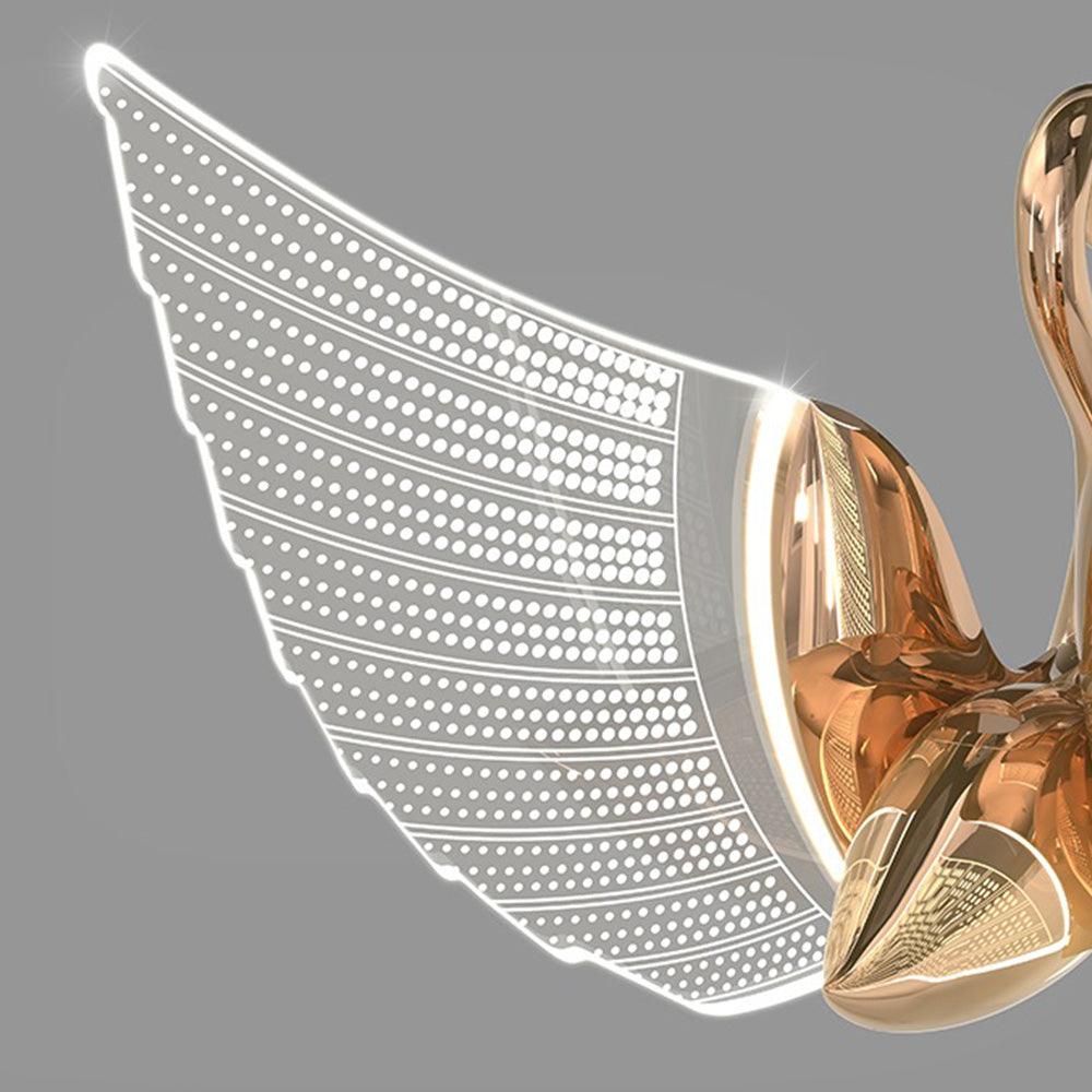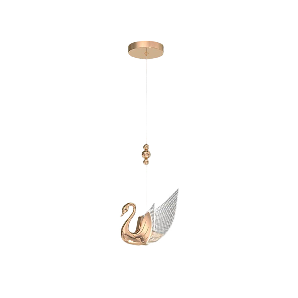 Denne pendelloftslampe har en svaneinspireret form udført i holdbart metal og akryl, der kombinerer dekorativ elegance med funktionel belysning. Tilgængelig i guld eller rosaguld finish leverer den afbalanceret belysning, som er velegnet til soveværelser, spisestuer eller stuer. Designet som både lyskilde og dekorativt element giver den alsidig anvendelse i forskellige interiører.