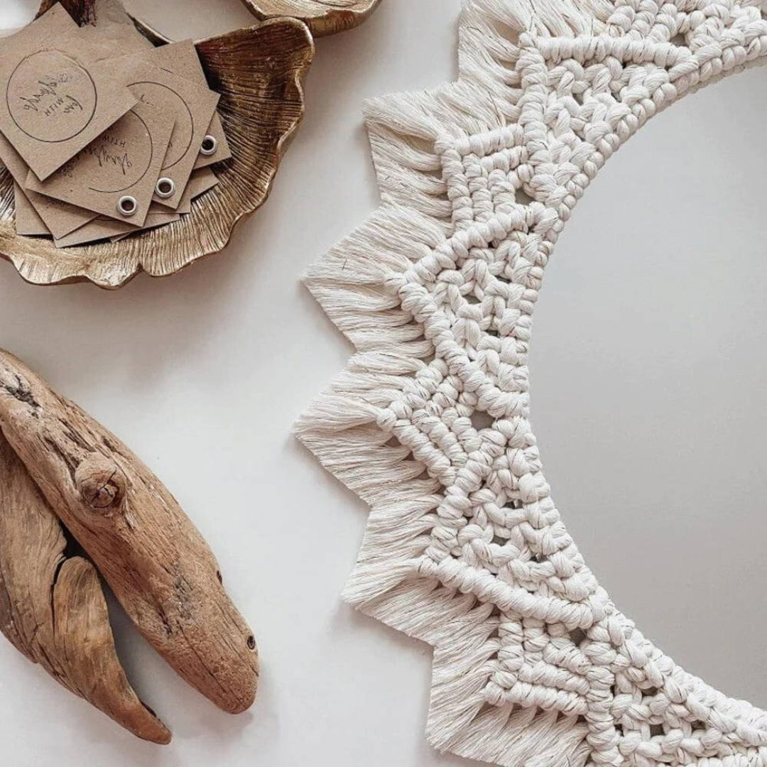 Forbedr dit rum med TasselGlow-spejlet, der er designet til at bringe en beroligende boheme-stemning til ethvert rum. Dets unikke design tilfører varme og karakter, hvilket gør det til en perfekt tilføjelse til dit soveværelse, din stue eller din entré. Spejlet giver dit hjem et ubesværet chikt touch og skaber en afslappet og indbydende atmosfære.