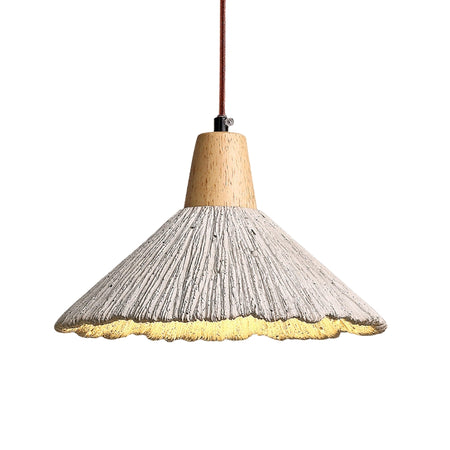 TerraGlow – Tekstureret konisk pendellampe med trædetalje