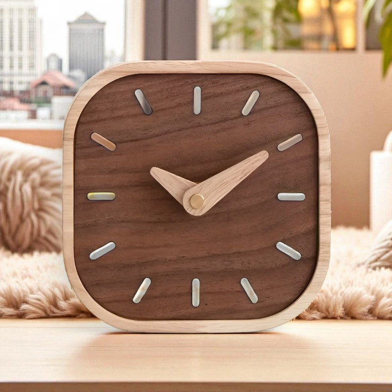 Dette bordur har en firkantet form og en stille tick bevægelse, der giver en rolig og pæn tidsvisning. Det passer til skriveborde, hylder eller natborde og passer godt ind i forskellige rummiljøer.
