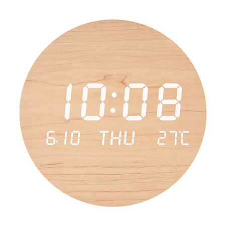 Tjek nemt tid, dato og temperatur med et hurtigt blik med det store, letlæselige display. Tallene er lyse og tydelige, hvilket gør det praktisk både dag og nat. Dets funktionalitet matcher dets stilfulde form, hvilket gør det til et praktisk valg til hverdagsbrug. Alt er enkelt lagt ud, så alle kan bruge det med lethed.