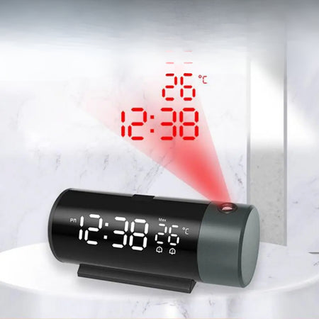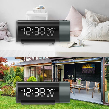 Dette moderne projektionsur tilbyder en perfekt blanding af praktisk og design. Den viser både tid og temperatur på hovedgrænsefladen, mens den projicerer tiden på væggen eller loftet for ubesværet synlighed. Dens brugervenlige design sikrer, at du kan kontrollere tiden fra forskellige vinkler uden afbrydelser.