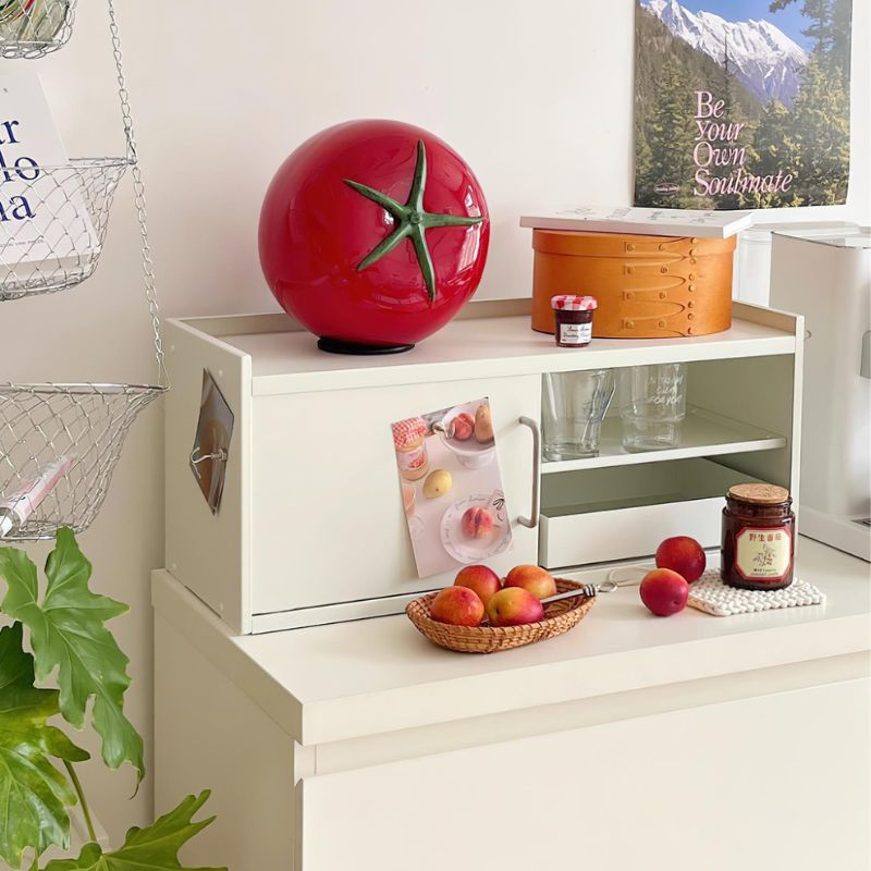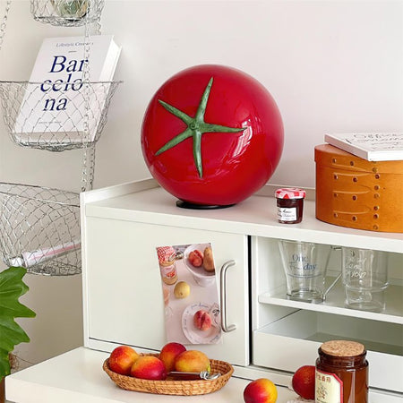 Denne bordlampe har et tomatinspireret design og kan placeres på skriveborde, natborde eller hylder. Den giver LED-belysning til indendørs områder og kan arrangeres efter behov.