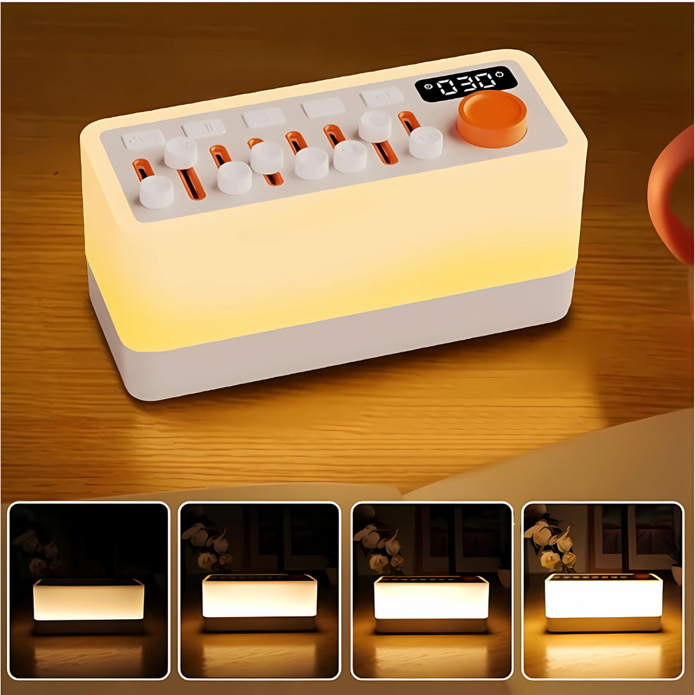 - Kombinerer hvid støj, natlys og Bluetooth-højttaler