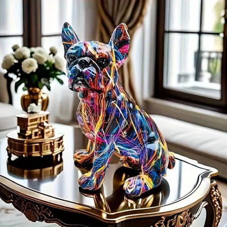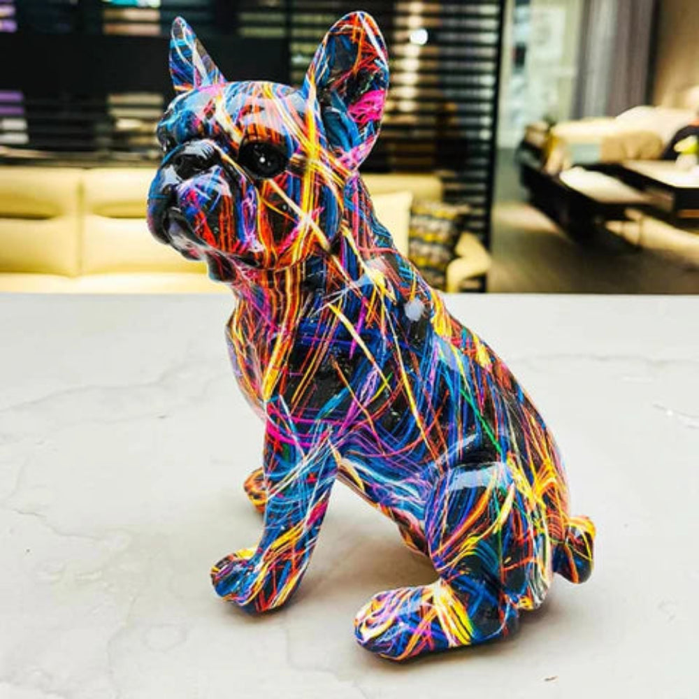 - Bulldog-figur med farverigt graffiti-inspireret mønster
