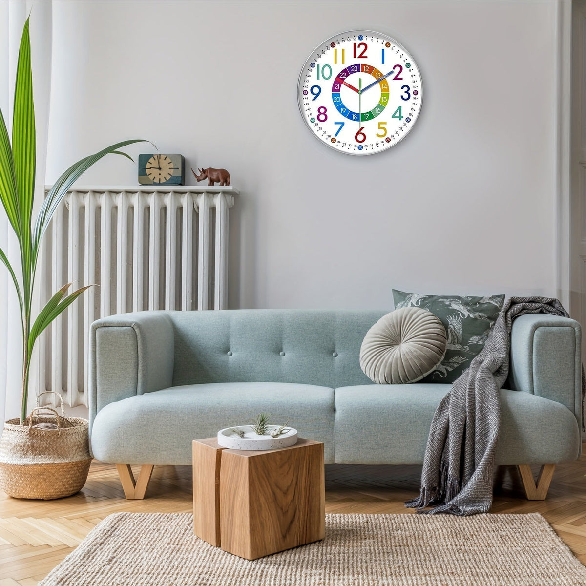 VibrantClock væguret gør det let og sjovt for børn at lære klokken. Med farverige visere og tydelige tal fanger det hurtigt barnets opmærksomhed og forvandler det til en leg at forstå tiden. Et perfekt ur til børneværelset, der kombinerer læring og leg i ét.