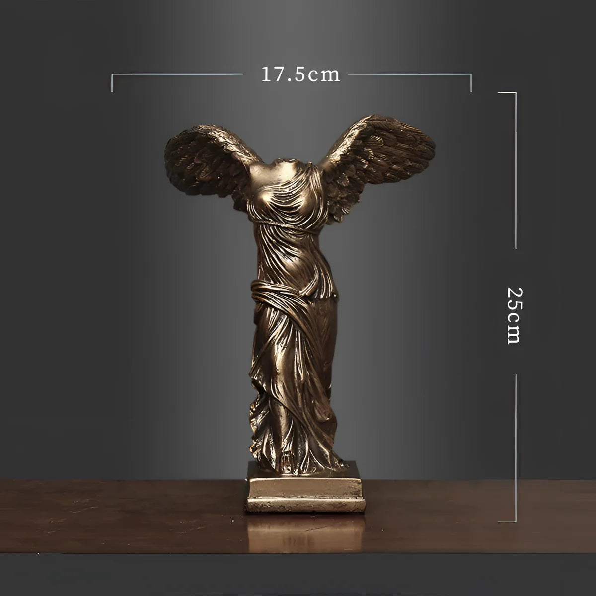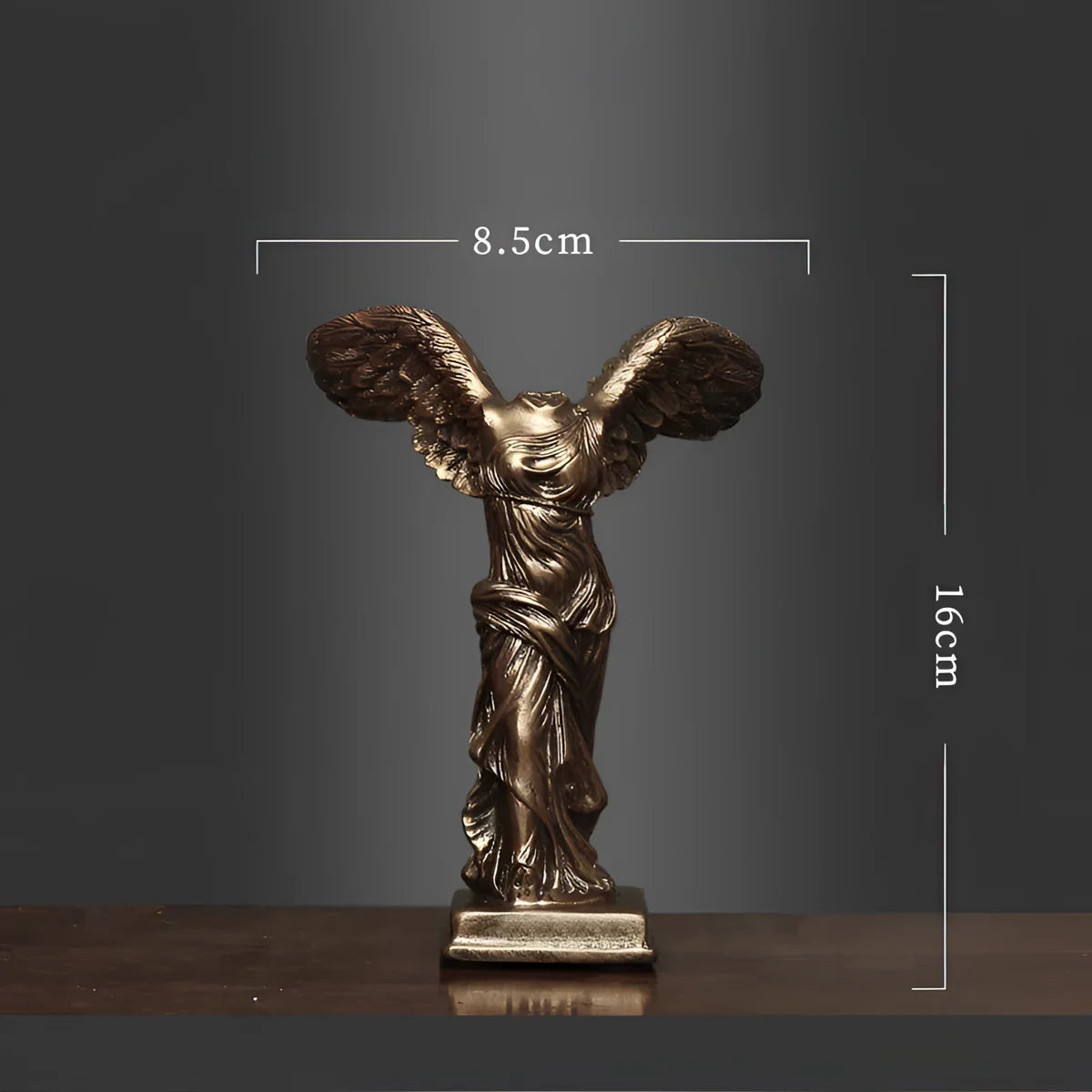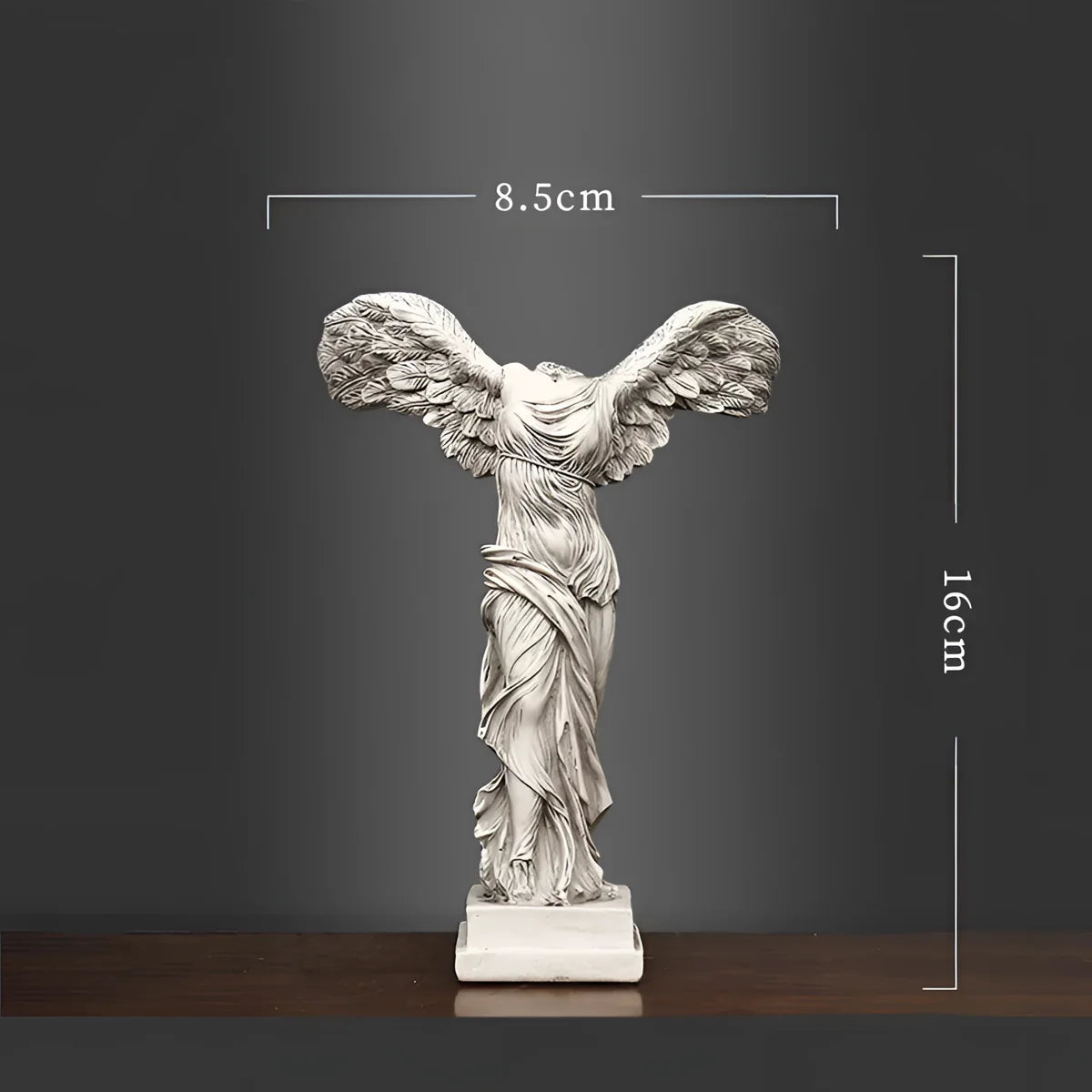VictoryWing - Winged Victory Sculpture bringer den græske mytologis tidløse elegance ind i dit hjem eller på dit kontor. Denne fantastiske skulptur indfanger essensen af sejrsgudinden og er omhyggeligt udformet til at udstråle ynde og styrke. Den er 25 cm høj og tilføjer et kunstnerisk præg til ethvert rum og forbedrer din indretning med sit indviklede design.