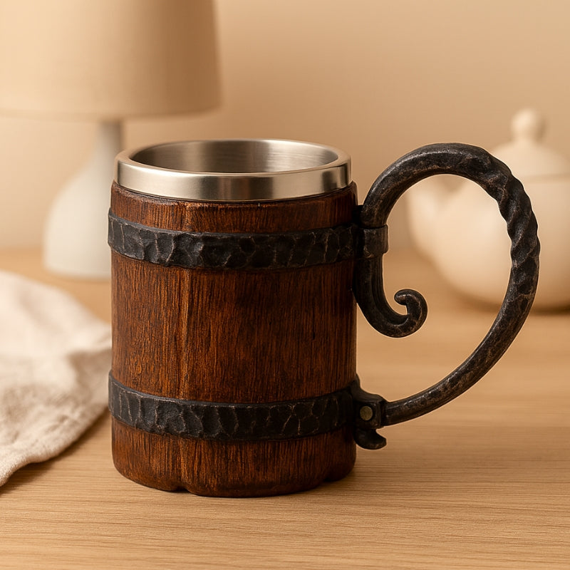 VikWood – Vintage ølkrus med trætønde-design