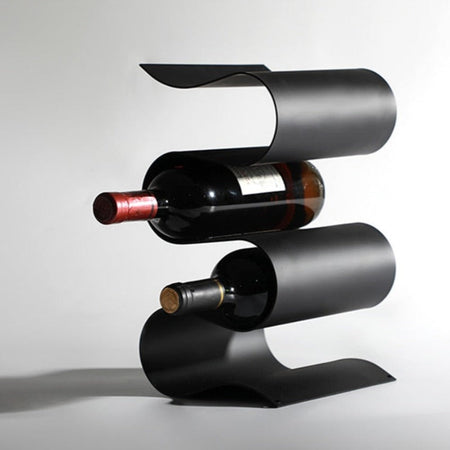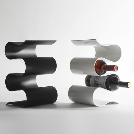 VinoCurve Elegant Bordplade Vinreol tilbyder en raffineret måde at opbevare og fremvise dine yndlingsflasker på. Dets flydende, buede design introducerer en følelse af bevægelse og sofistikering i dit rum. Uanset om det placeres på et spisebord, en bardisk eller en hylde, bliver det et øjeblikkeligt blikfang. Dette møbel forvandler almindelig vinopbevaring til et udtryk for smag og elegance.