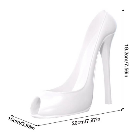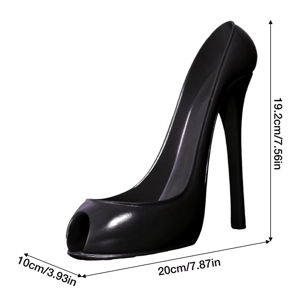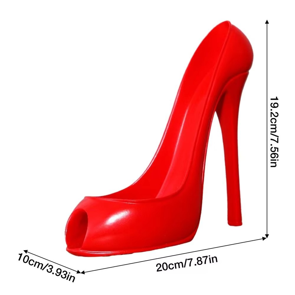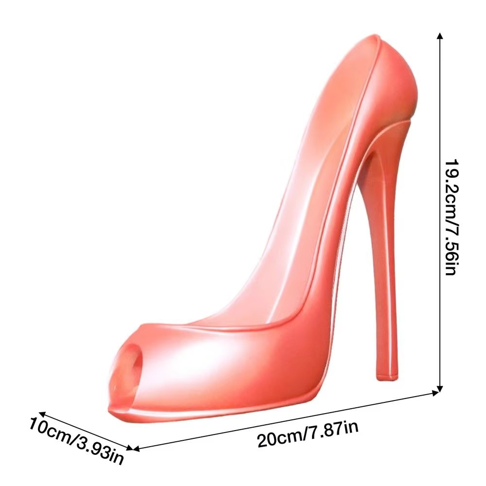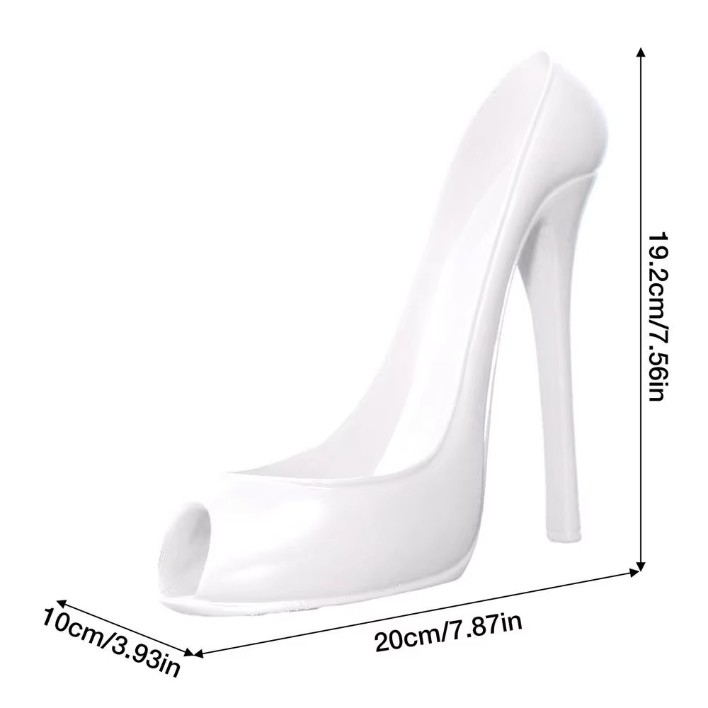 Denne vinholder har et design formet som en højhælet sko, der sikkert holder en vinflaske til display i køkkener, stuer, barer eller restauranter. Fremstillet af holdbar plastik er den både dekorativ og funktionel, hvilket gør den velegnet til events, sammenkomster eller daglig opbevaring. Det kompakte design gør den ideel som borddekoration, mens flasken holdes stabil.