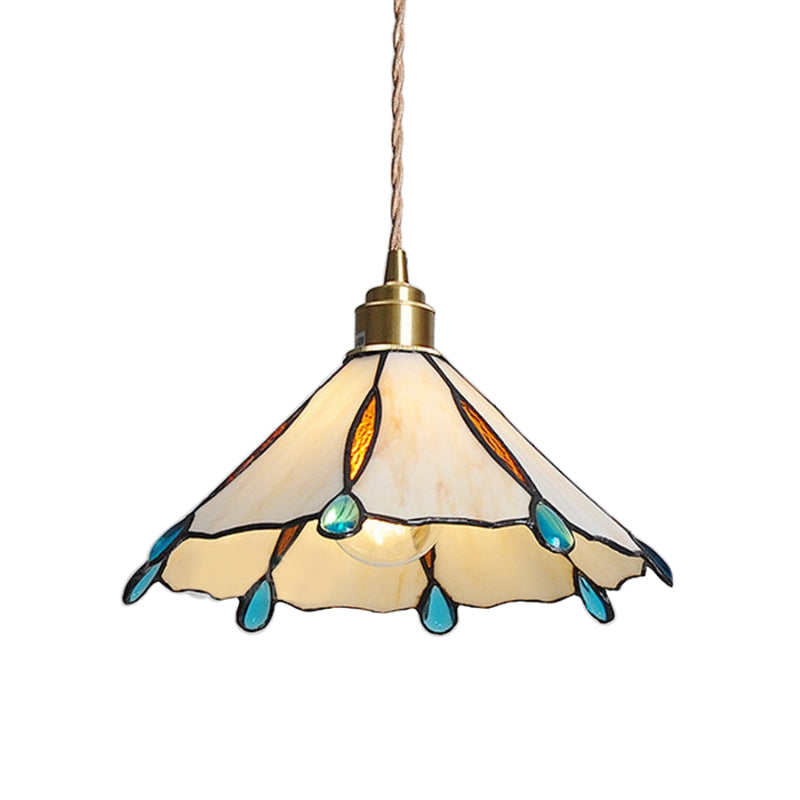 VitraGlow – Retro Tiffany glaspendel i kegleform med vintage charme
