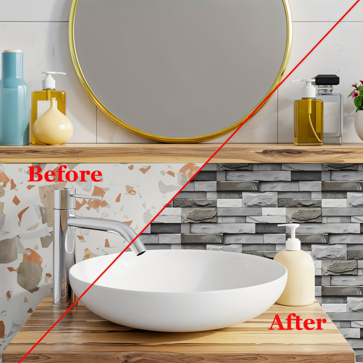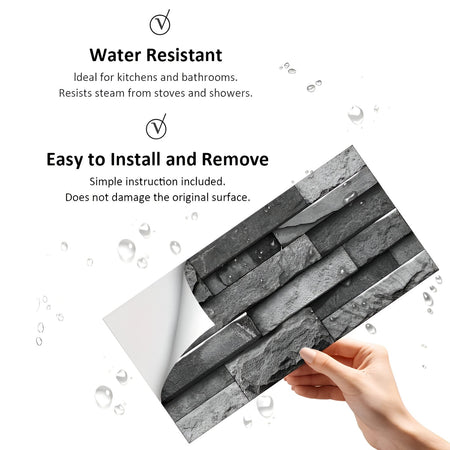 Det realistiske design bringer sofistikering til dit rum, mens dens vandtætte og pletafvisende overflade gør vedligeholdelsen til en leg. Intet behov for tunge værktøjer eller installatører - bare pil, sæt fast og beundr den luksuriøse finish. Perfekt til lejere, gør-det-selv-folk eller alle, der ønsker at forbedre deres hjem med minimal indsats og maksimal effekt.