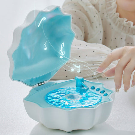 WaveShell er en unik blanding af stil og funktionalitet med sin muslingeskalform og retro-pladespiller-look. Når den tændes, reflekterer den roterende skive blødt, bølgelignende lys på dine vægge og skaber en drømmende og afslappende atmosfære. Det iøjnefaldende design gør den til en charmerende dekoration til soveværelset eller skrivebordet.