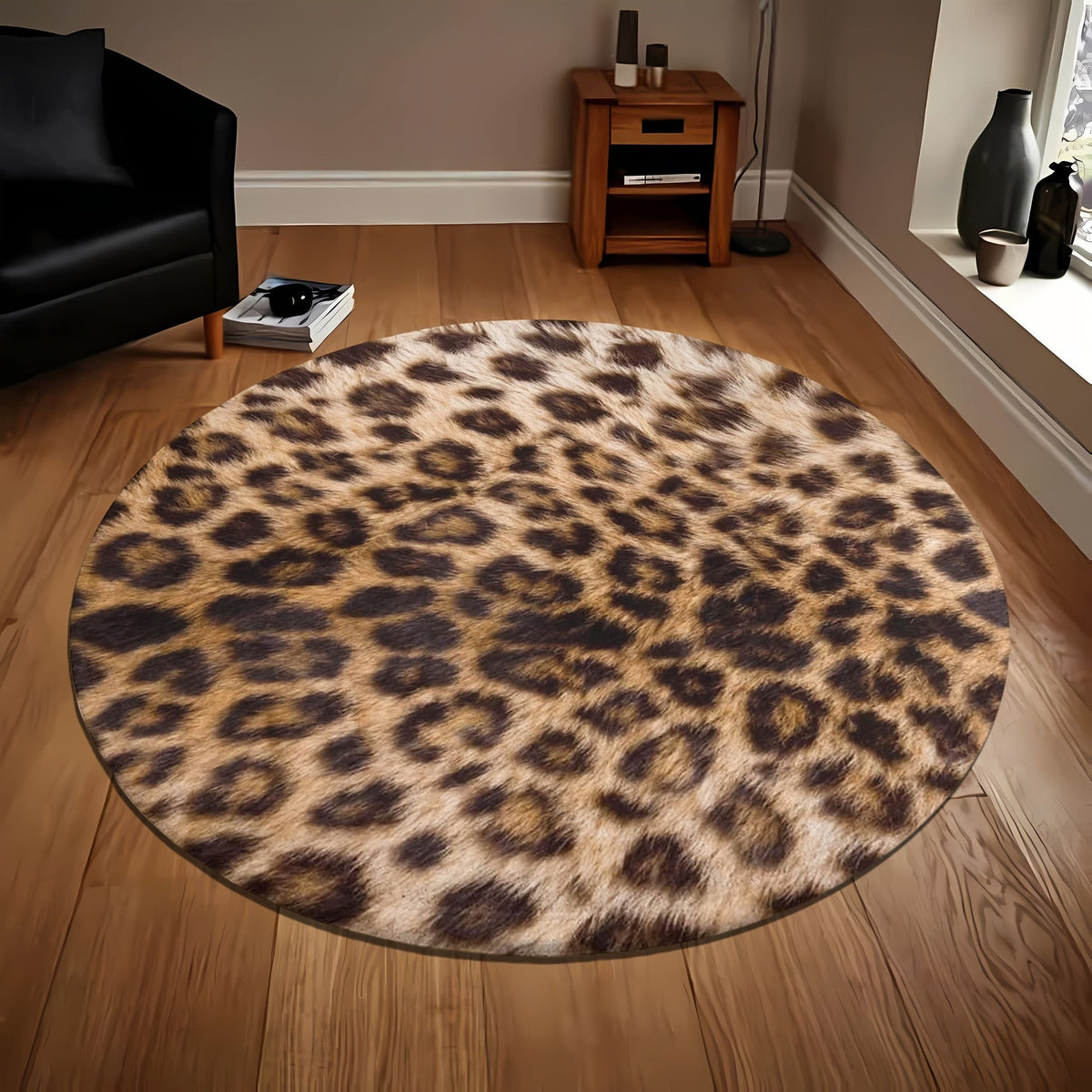 WildElegance - Rundt tæppe med leopardtryk med fedt mønster og skridsikker bagside til ethvert rum