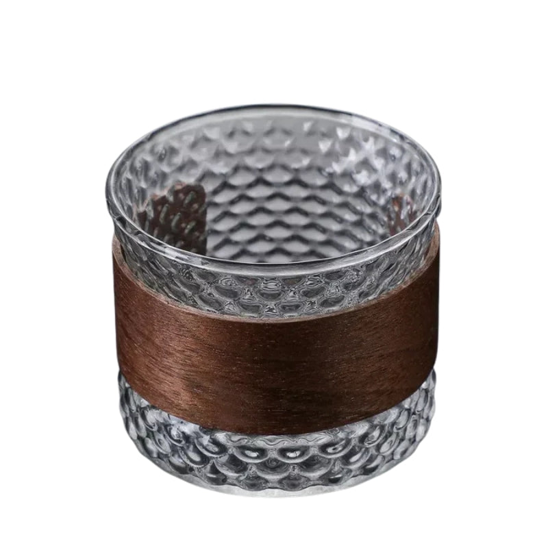 WoodFlow – Håndlavet Tumbler-Glas Sæt med Trædetalje og 130 ml Kapacitet