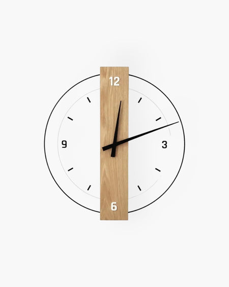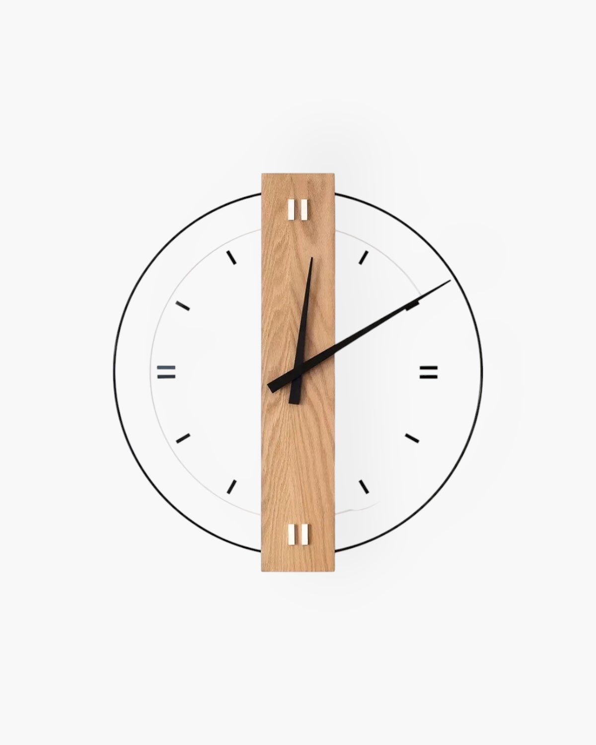 Løft dit rum med WoodSync væguret, der byder på et slankt midtpunkt i træ og minimalistisk design. De kontrasterende sorte hænder glider jævnt hen over den raffinerede runde ramme og skaber en perfekt harmoni mellem moderne elegance og organisk varme. En subtil, men slående tilføjelse til enhver stue, arbejdsværelse eller kontor.