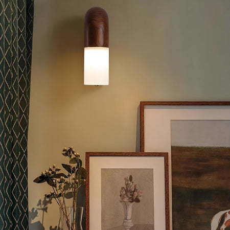 WoodWave - moderne buet væglampe kombinerer smukt varmen fra naturligt træ med et moderne buet design. Dens glatte, buede form indrammer elegant en blød, matteret lysdiffusor, der kaster et blidt lys, som skaber en hyggelig atmosfære. Denne lampe er perfekt til at forbedre ethvert rums æstetik, uanset om det er i en gang, en stue eller et soveværelse.