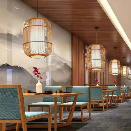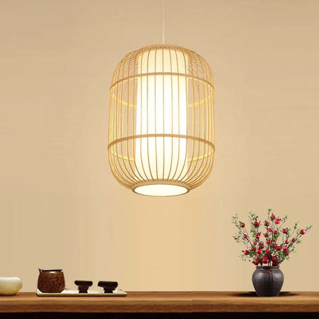 Håndvævet bambus-pendellampe, der tilfører rustik varme til interiøret