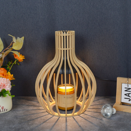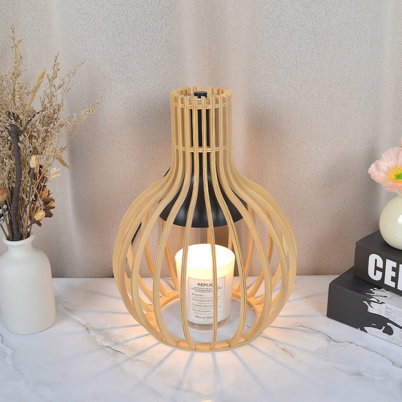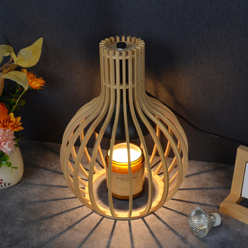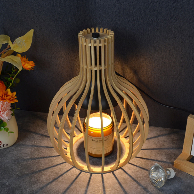 Træbordlampe med design til vokssmeltning