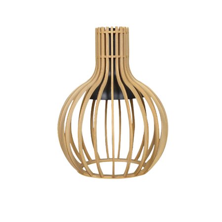 ZenLume forener japansk tradition med moderne funktion i en træbordlampe designet til vokssmeltning. Med sin runde form og varme glød skaber den en beroligende atmosfære i soveværelser og stuer. Lampen er fremstillet i holdbart træ med brun finish og fungerer både som dekorativt element og som en praktisk kilde til blød belysning. Perfekt til hyggelige aftener og rolige interiører.